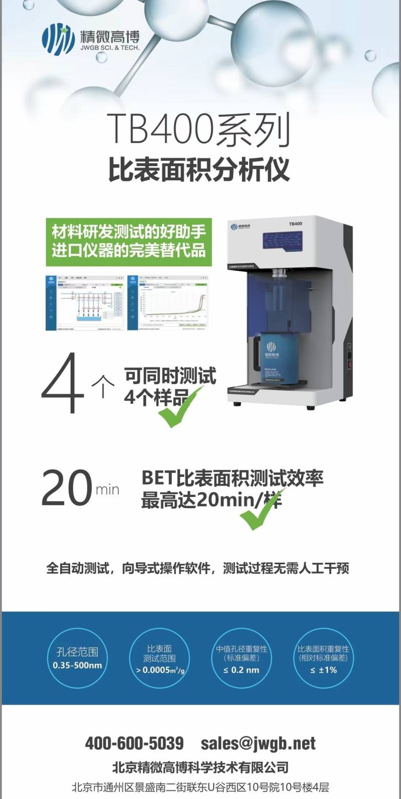 北京精微高博科学技术有限公司是中国材料表征仪器的领先制造商,专业从事静态比表面积及孔径分析仪、动态比表面积测定仪、蒸汽吸附仪、真密度仪等物性分析设备的研究。主导产品有D系列动态比表面积测定仪、TB系列静态比表面积及孔径分析仪等。
